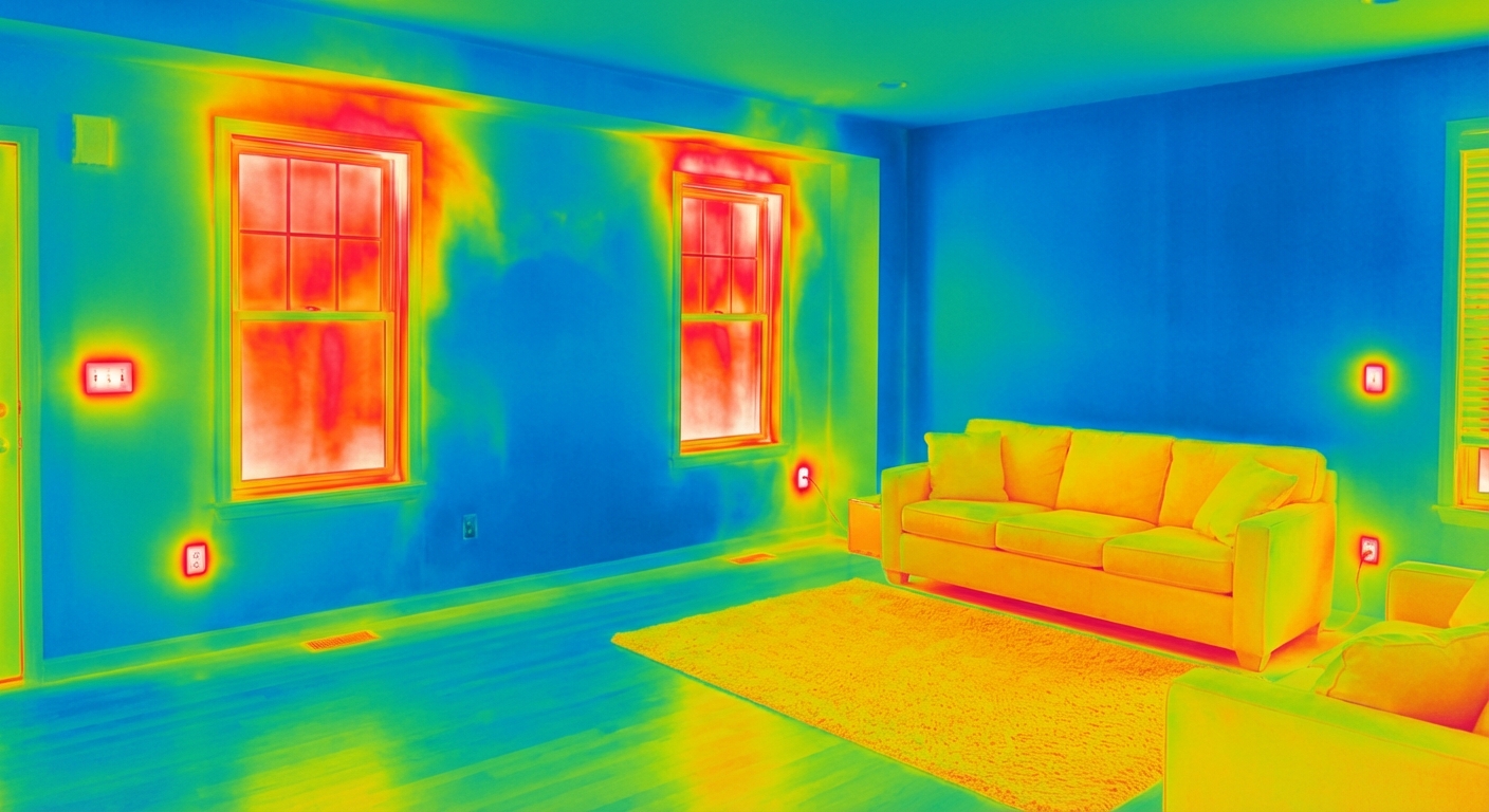 A residential infrared inspection reveals hidden moisture behind walls, missing or damaged insulation, air leaks around windows and doors, electrical hotspots, HVAC duct leakage, and plumbing leaks. Our FLIR T620 camera provides 307,200 picture elements per image for detailed analysis — all without any invasive or destructive testing.